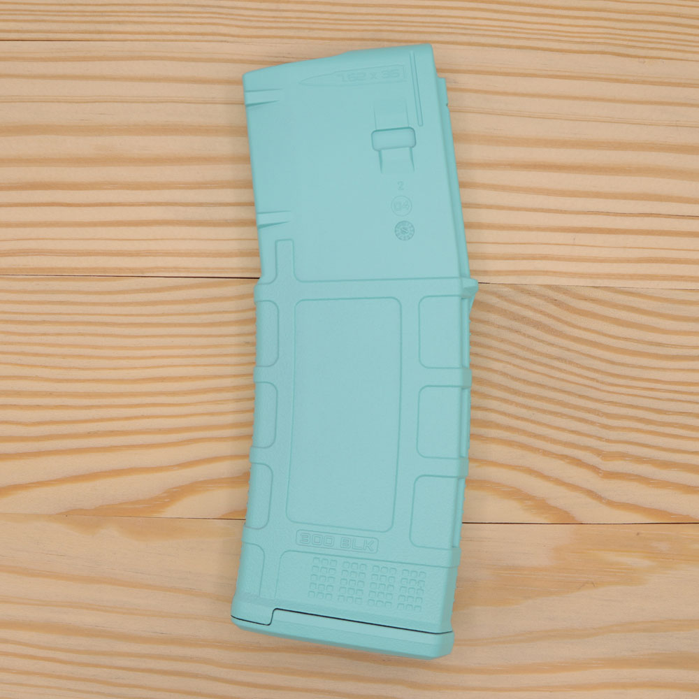 These 30rd PMAGs for AR/M4 rifles chambered in 300 Blackout have been professionally coated in Robin Egg Blue color Cerakote.